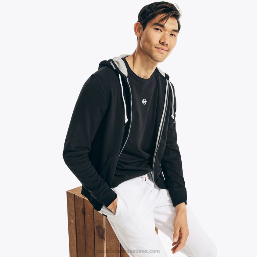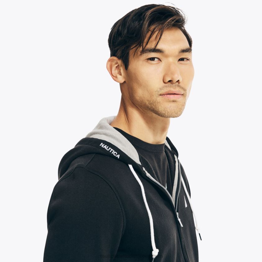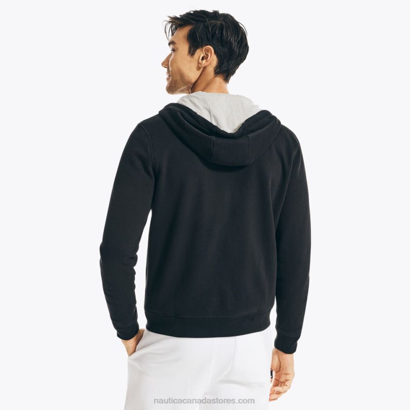 This warm hoodie is just what your cool-weather wardrobe needs. It's made from fleece-lined cotton-knit and features a drawstring hood, side pockets, and a full-zip closure.