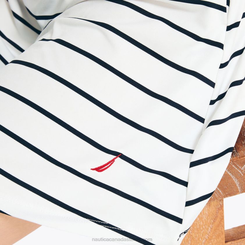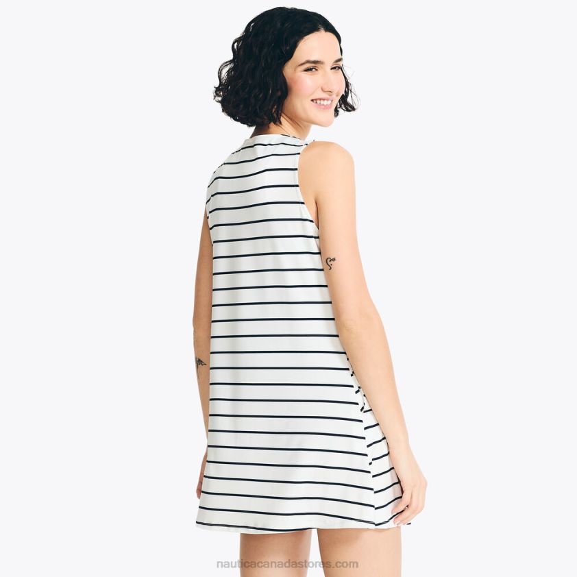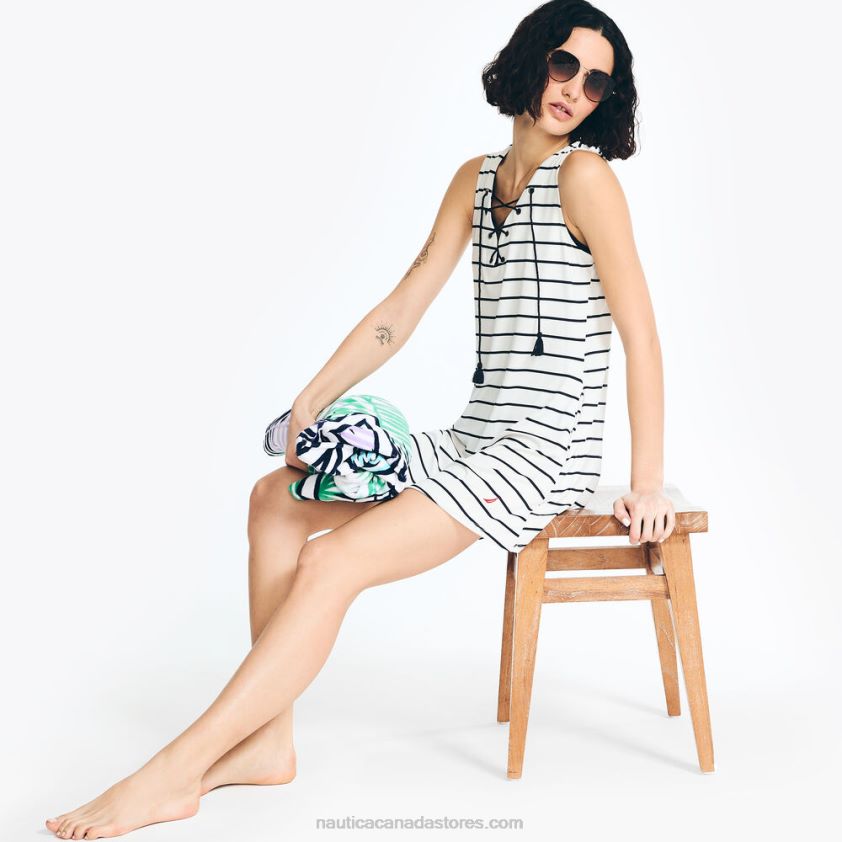 Cut from comfortable stretch-knit, this loose-fitting cover-up dress features a striped design and easy lace-up front.