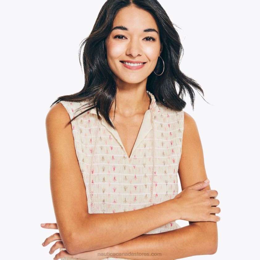 Play up your look with this printed top complete with a split neck, ruffle trim, and our logo plaque at the hem.