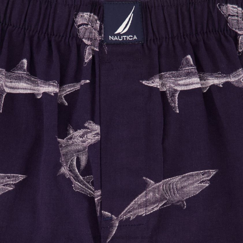 Lounge out in comfort in this woven boxer made from soft, breathable cotton. Cut for a classic fit, it features a fun shark print and logo stretch waistband.